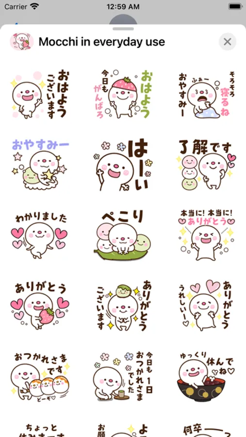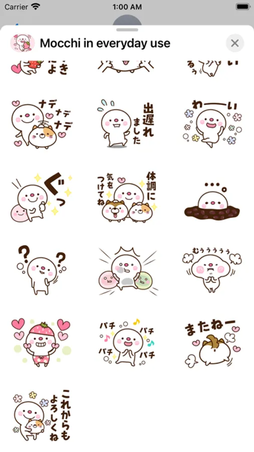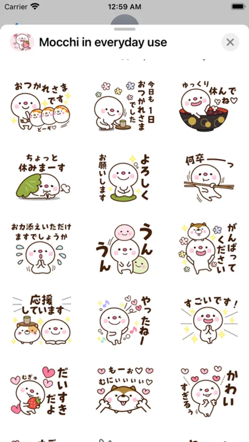 A rice cake, Mocchi. It contains Mochi shiba dog, Mochi cat, and Mitarashi dango. It contains commonly used words, which can also be used for Valentine's Day.