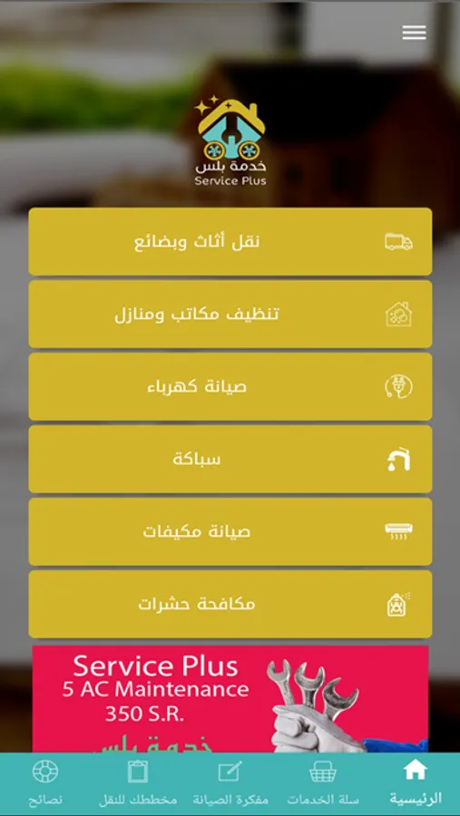 خدمة بلس تطبيق إلكتروني يقدم خدمات نقل الأثاث، ونقل البضائع بجميع أنواعها والصيانة المنزلية بمزايا فريدة. والتي تشمل صيانة الكهرباء والسباكة وتنظيف وصيانة المكيفات ومكافحة الحشرات. نقدم أفضل الخبرات للحصول على الخدمة الأفضل بالسعر الأنسب.