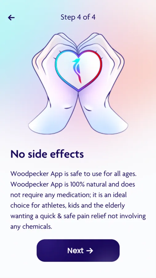 Compared to medication-based pain relief, Woodpecker App is more natural, safer and provides all the following benefits: