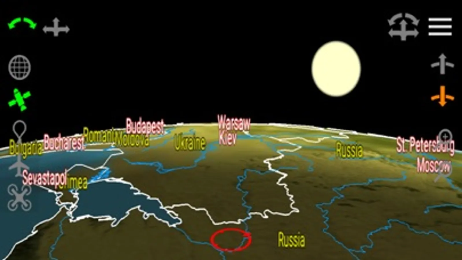 + Use the "curl up" feature to move labels and borders from below the horizon to up in the sky. So even if your destination is half way around the world, you can see it.