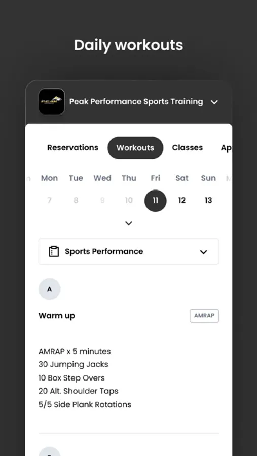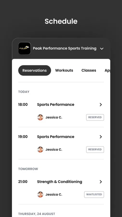 For members of Peak Performance Sports Training to reserve their place in a class, sign up for gym events, and general account management like updating headshots and credit card on file.
