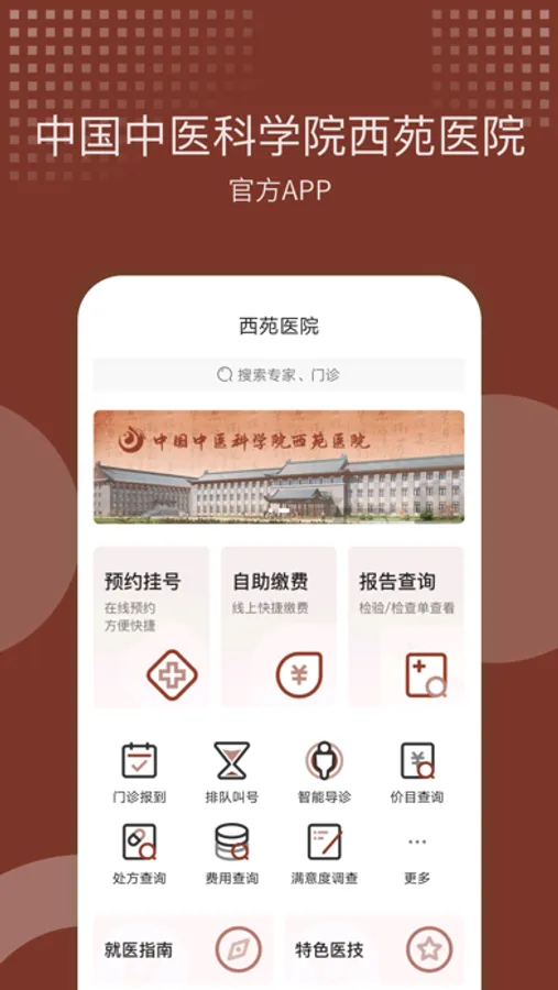 中国科学院提供预约挂号、官方收费APP、自助缴费、报告价目查询等服务,用户线上进行挂号、缴费方便、报告查询等服务。