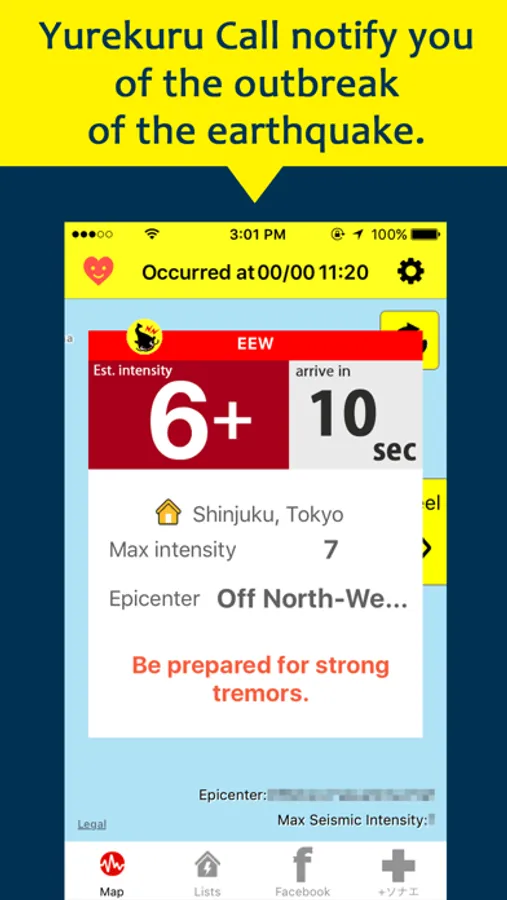 Utilizing the Earthquake Early Warning from the Japan Meteorological Agency, this application provide you with the earthquake warning.