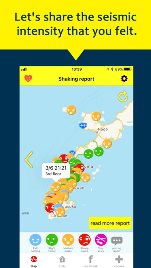 ■ "Shaking report" Let's share the seismic intensity that you felt.
