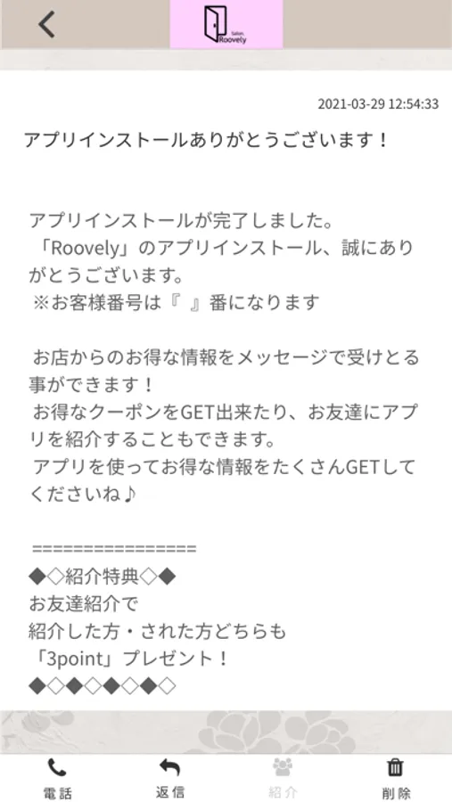 このアプリでは、Roovelyの最新情報の受け取りや便利な機能を使う事ができます。