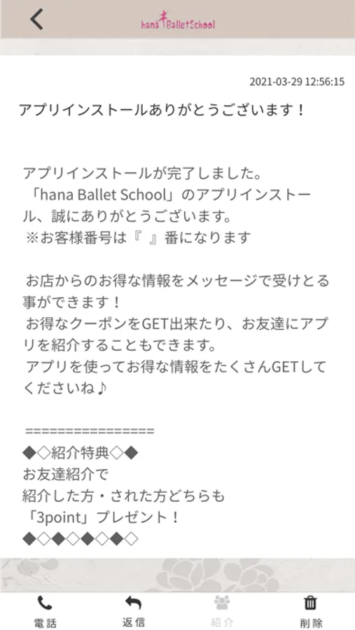 hanaballetのアプリをSNSを通じてお友達に紹介する事ができます。