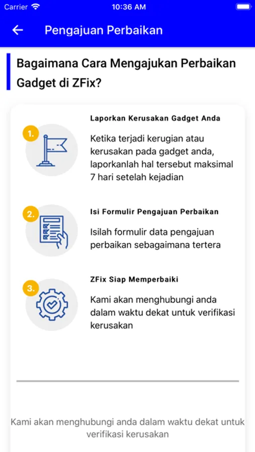 Untuk kamu yang sudah bergabung dengan layanan ZFix, kamu akan menikmati layanan perbaikan layar sebanyak 1 kali pengajuan. Jadi kamu gak perlu khawatir lagi kalau layar gadget kamu rusak.