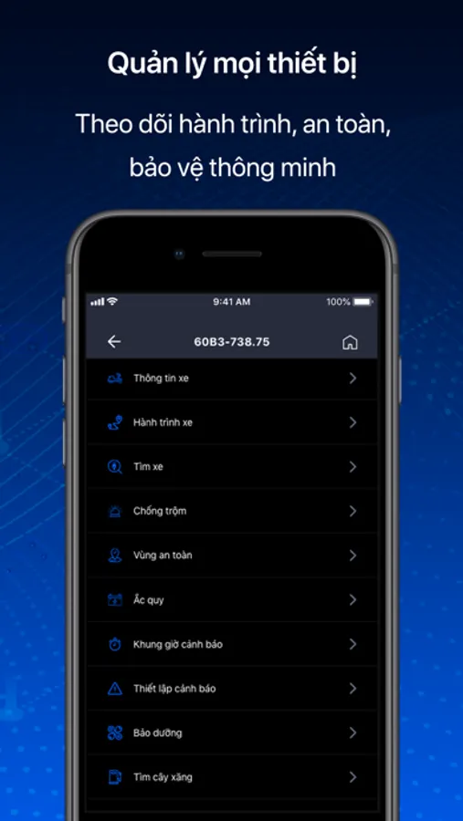 Trên mỗi phương tiện đăng ký được lắp đặt thiết bị giám sát , tích hợp ứng dụng được cài đặt trên điện thoại, máy tính. Mỗi thiết bị là môt tài khoản riêng biệt, đảm bảo tính bảo mật cho người dùng. Thiết bi ngoài việc định vị và quản lý hành trình còn ghi lại các tham số , thông qua trung tâm xử lý tín hiệu GPRS sẽ hiển thị lại trên trang quản lý . Từ đó hỗ trợ người dùng giám sát và bảo vệ phương tiện khỏi sự xâm nhập của kẻ gian.