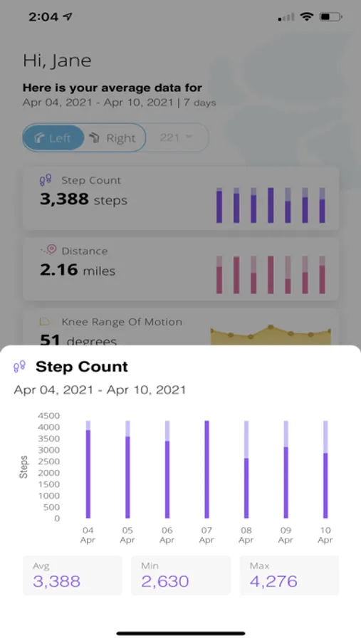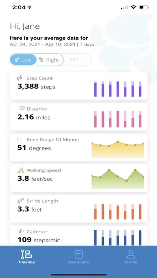 The Canary Medical Mobile App extends your patient experience to your mobile phone. Use the app to see your gait quality and activity data collected by your CanturioTM Tibial Extension smart knee implant.