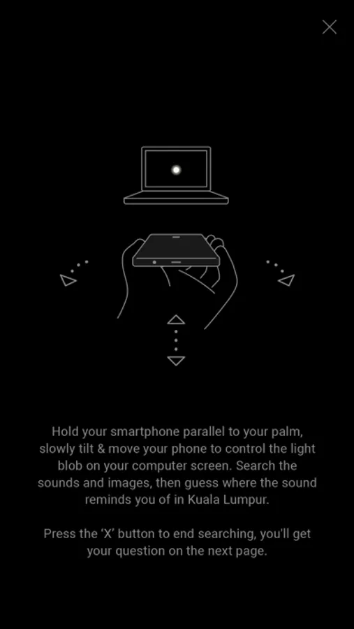 ‘The Blind Men & The Elephant, in Kuala Lumpur’ is a virtual interactive installation that explores the sounds of a location in Kuala Lumpur through two devices simultaneously: the computer and smartphone/tablet.