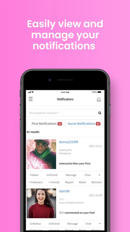 ▶ A function to easily check and distinguish between post-related news and social-related messages in one notification window