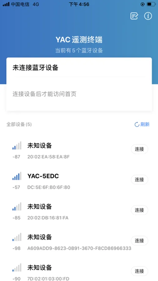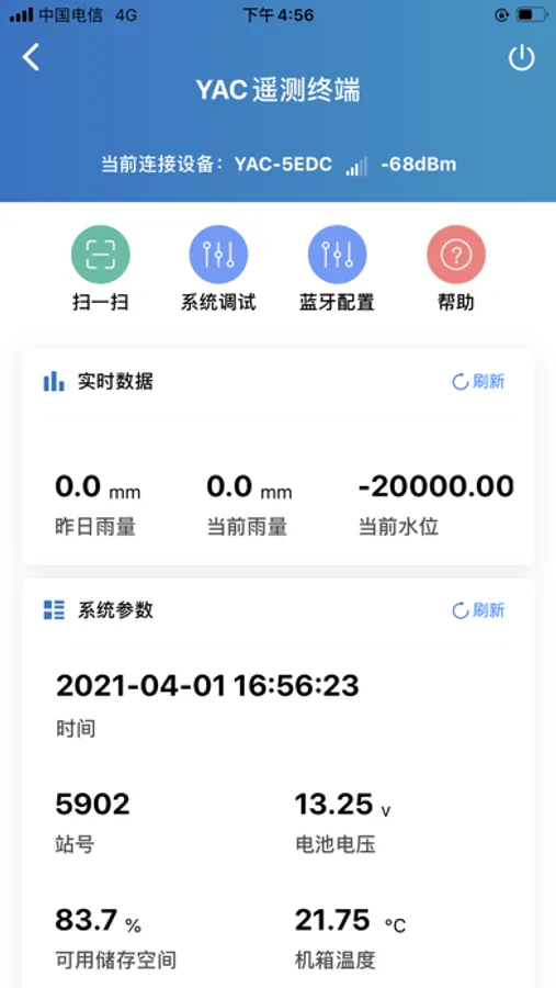 此蓝牙app与YAC9900遥测终端统配套使用,能够对该设备系统进行参数设置和系统调试,为用户和设备系统之间提供友好型交互界面。