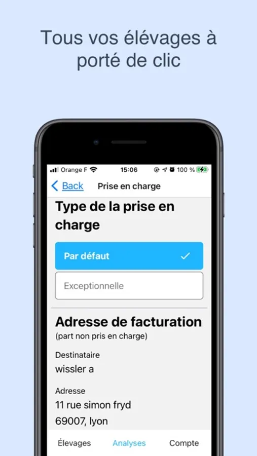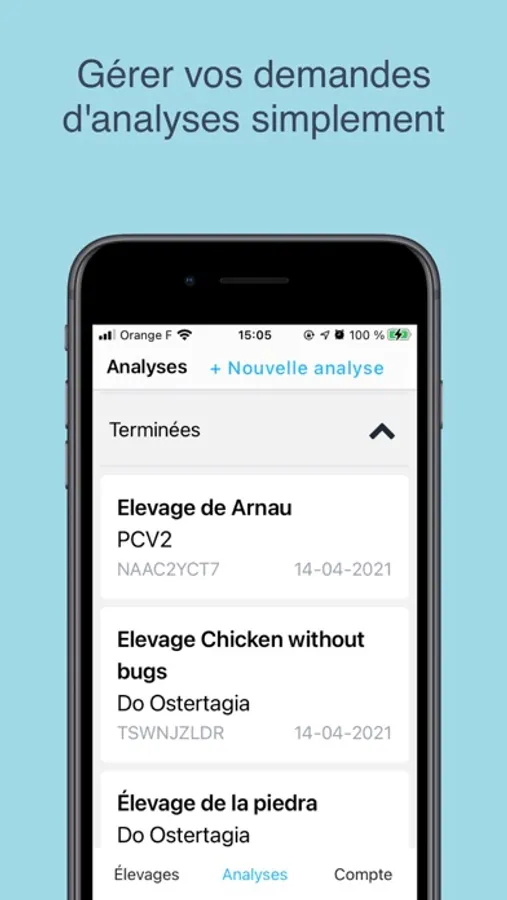 Gestion des élevages et des demandes d'analyses avec prise en charge.