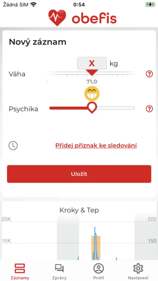 - jednoduché zadávání váhy, % tuku, krevního tlaku, glykémie, obvodu pasu