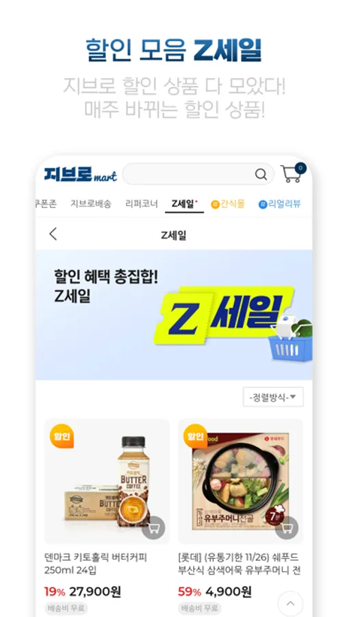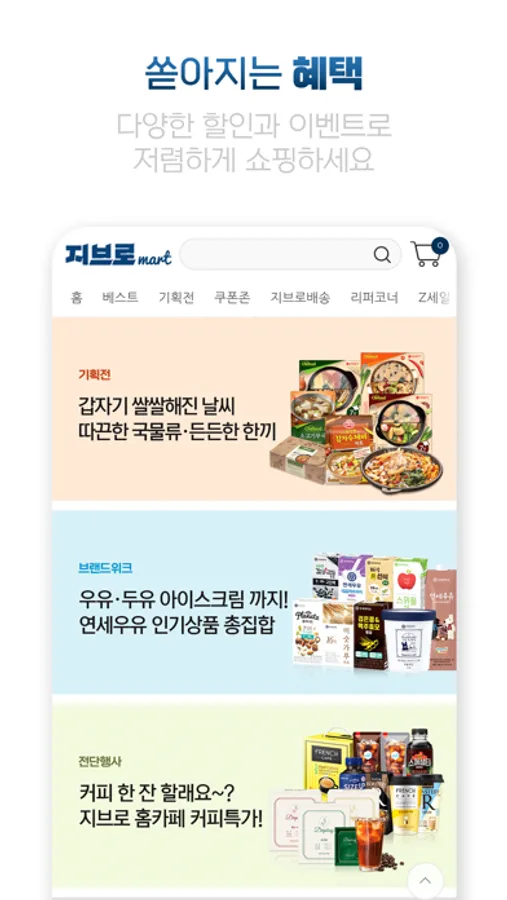 다양한 먹거리를 합리적인 가격으로 추천하는 장보기 앱입니다.