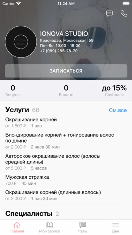 Официальное мобильное приложение салона красоты IONOVA STUDIO