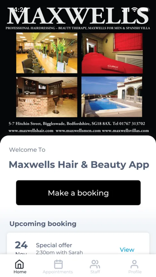 The Maxwells Hair & Beauty App app makes booking your appointments and managing your loyalty points even easier. You're just a few taps away from feeling good and looking great!