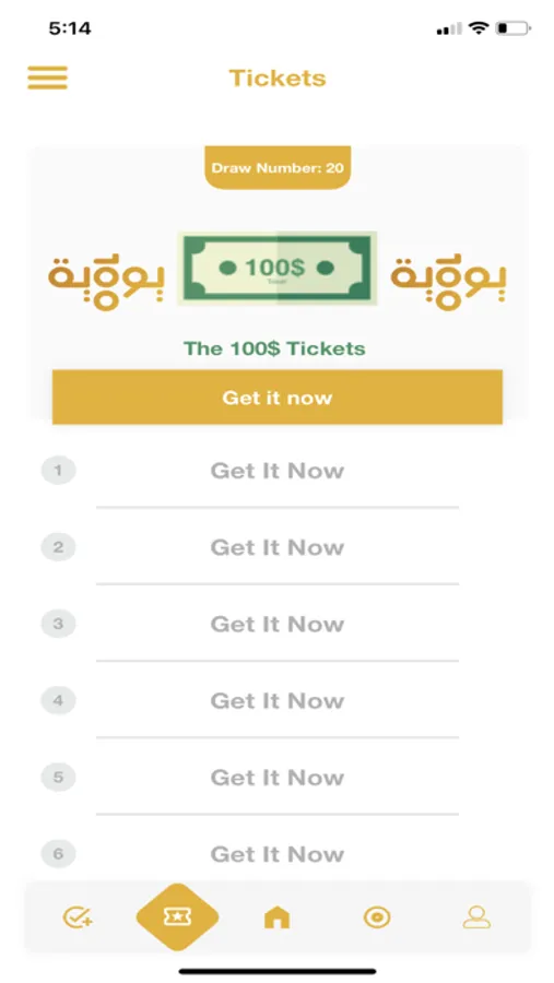 100 Yawmiyyi is an application that gives user tickets to join daily drawing of 100$. To win a ticket, the users answer a group of questions.