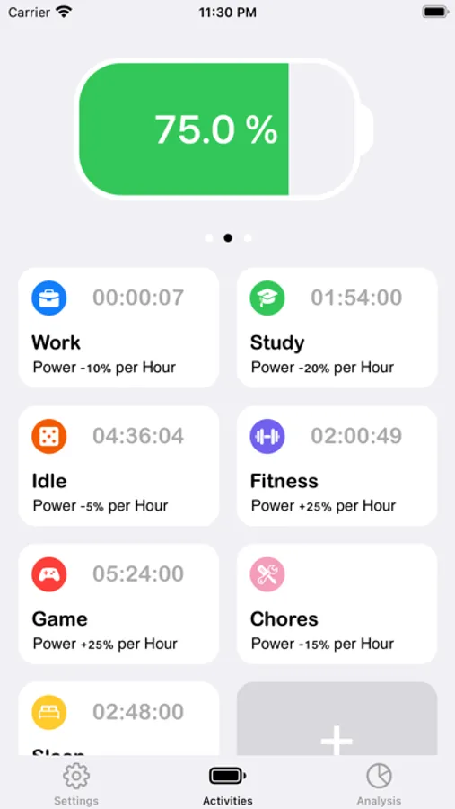 Features a battery shaped mental health meter, which updates automatically as you log daily activities.