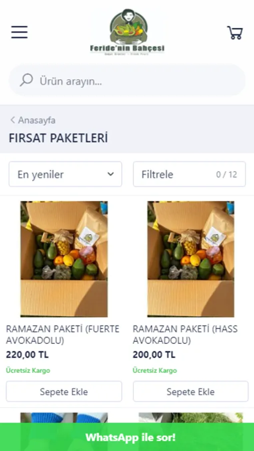 İyi ve organik tarım ile sizlere doğal meyvelerin gönderimini taze bir şekilde sağlıyoruz. Avokado, muz gibi tropikal meyvelerin üretimini gerçekleştiriyoruz. Feride Hanımın yaptığı tamamen doğal aynı zamanda yöresel ev yapımı reçel, pekmez, erişte tarzı ürünlere ulaşabilir, güvenilir bir şekilde sipariş verebilirsiniz. Bunların dışında greyfurt, portakal, zerdeçal, keçiboynuzu, alabaş turp gibi doğal ürünleri de sitemizde bulabilirsiniz. Organik market ürünlerimiz içerisinde sağlıklı atıştırmalıklar, granola & yulaf ezmesi, organik filtre kahveler, organik hindistan cevizi yağı gibi çeşitli yağlar, fıstık ezmesi çeşitleri veya organik sos çeşitleri bulabilirsiniz. Daha fazla doğal ve organik ürünler için internet sitemizi ziyaret edebilirsiniz.