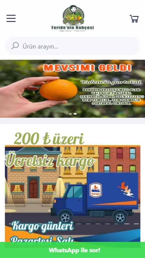 Tamamen doğal sebze ve meyveleri aynı zamanda anne Feride Hanımın yaptığı doğal ve yöresel ürünleri sipariş ver butonu ile etkileşime geçtiğiniz anda, haftanın ilk iki iş günü olan pazartesi ve salı günleri gönderimini sağlıyoruz. Sipariş verdiğiniz doğal sebze ve meyveler hafta sonu dalından toplanır. Amacımız sizlere dalından yeni kopmuş ürünleri taze şekilde göndermektir. Özel koliler ile özenle paketleyip gönderimini sağlıyoruz.
