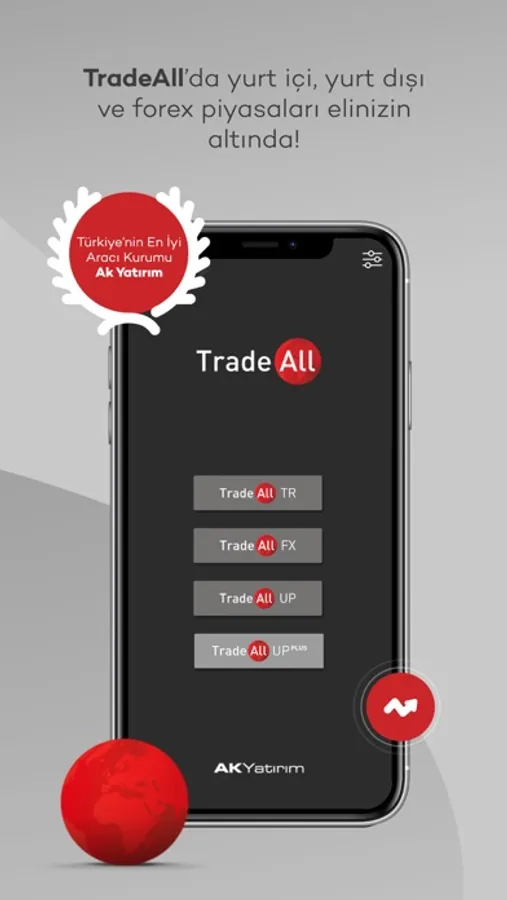 TradeAll TR uygulamasıyla yurt içi piyasalarda hisse senedi, varant ve VİOP ve fon işlemlerinizi hızlı bir şekilde gerçekleştirebilir, Ak Yatırım araştırma raporları, teknik analiz notları, model portföy önerileri ve size özel anlık bildirimler ile yatırımlarınıza yön verebilirsiniz. Yepyeni mobil deneyimi ile TradeAll TR uygulaması hep yanınızda!