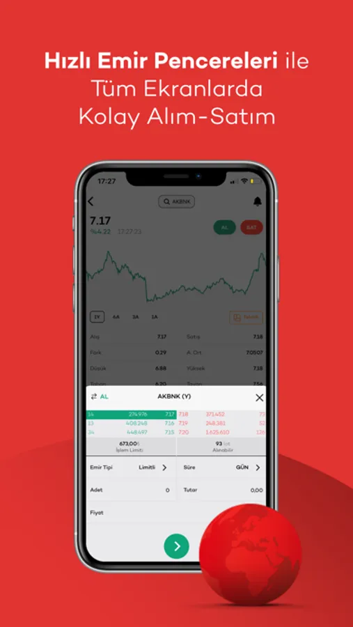 25 yıllık Ak Yatırım deneyimini TradeAll TR uygulamasıyla birleştirdik. Yatırımlarınıza değer katmak için geliştirdiğimiz TradeAll TR mobil uygulaması üzerinden pek çok işlemi gerçekleştirmeniz mümkün. Yurt içi piyasalara özel TradeAll TR uygulaması ile anlık borsa takibi, piyasalarda yaşanan gelişmeler ve Araştırma ekibimizin ürettiği teknik analiz ve model portföy önerileri başta olmak üzere pek çok konuda ayrıcalıklı Ak Yatırım hizmetlerinden yararlanabilirsiniz..