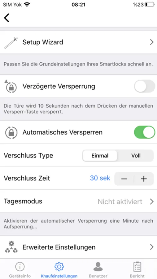 - Automatische Verriegelungsfunktion bei jedem Öffnen des Schlosses (Auswahl verschiedener Zeiten und Schlosstypen)