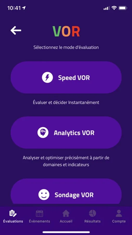 VOR est LA solution d’aide à la décision par excellence dans des dizaines de besoins et problématiques récurrentes tels que réunions (commerciale, Codir, Comex…), mesure du bien-être et de la motivation des acteurs de la performance, anticipation et diagnostic des process internes et externes, enquête de satisfaction, recrutement, entretien d’évaluation, , coaching et mesure de la performance avant et pendant la compétition, débriefing de performance, partage sur la vision de l’évènement à venir, qualité de la préparation, en outil de coaching en lien direct avec ses équipes, en outil d’aide à la vente et encore de très nombreuses applications que vous allez découvrir en l’utilisant.