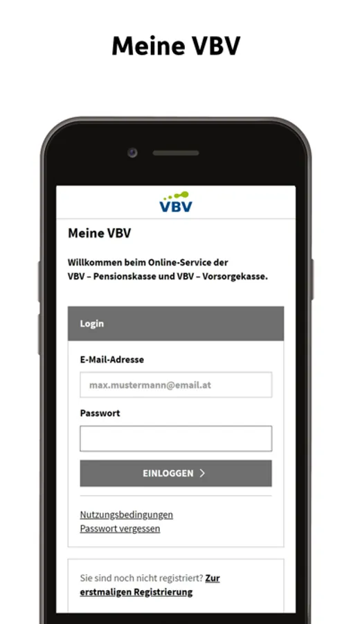 - Wenn Sie Meine VBV noch nie genutzt haben, dann müssen Sie sich vor dem ersten Einstieg einmalig registrieren.