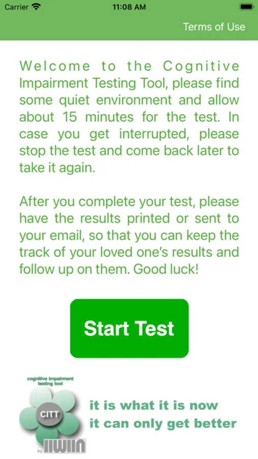 Cognitive Impairment Testing Tool is easy to follow app which lets you test your loved one for any signs of cognitive impairment.