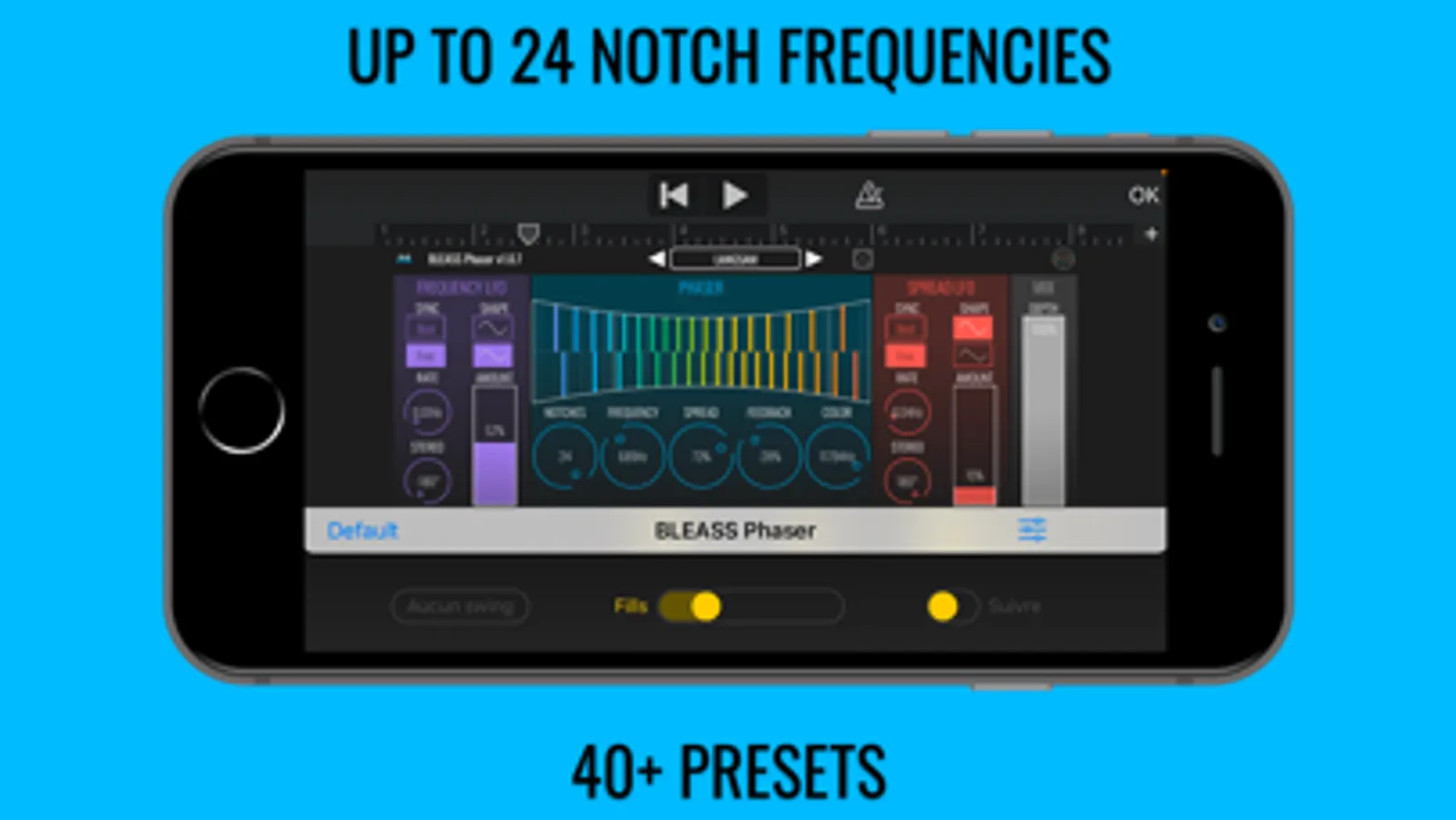 No modulation collection would be complete without a phaser. This is why BLEASS Phaser delivers at the same time all of the classic phasing effects through 40 refined presets as well as a large pull of stereo functionalities and interweaving modulations thanks to its frequency & spread LFOs, as well as a precise control over the stereo.