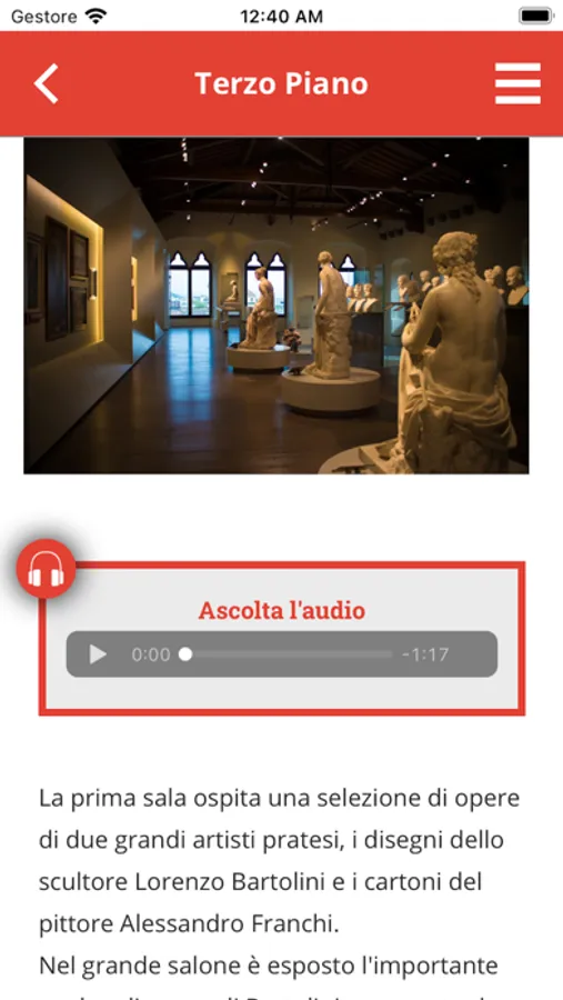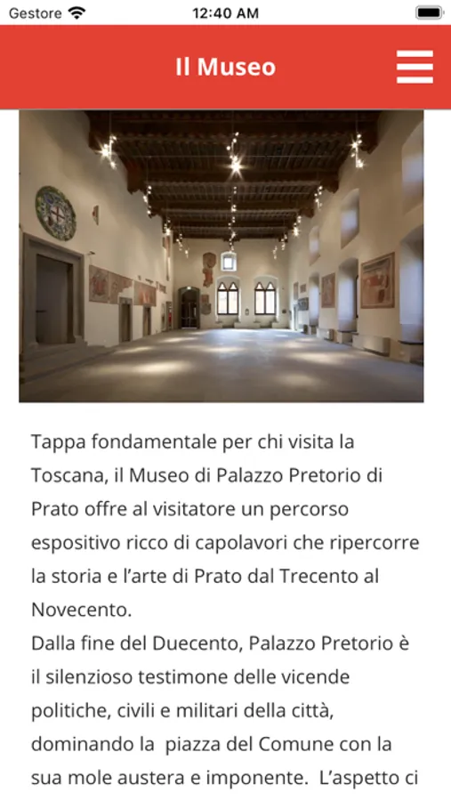 Grazie a quest'applicazione, l'utente potrà conoscere il Museo, l’allestimento espositivo con le sue opere di maggior pregio, le mostre in corso e in programmazione al Palazzo, gli eventi collegati al Museo e le informazioni utili alla visita.