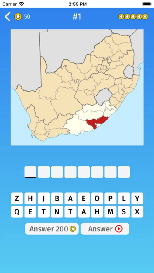 - Blank map: memorize shapes of South Africa in map puzzle.