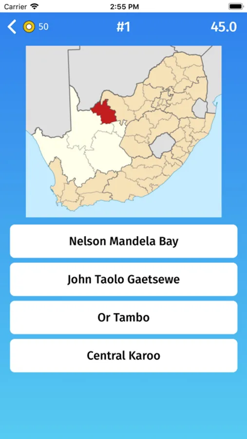 It is the ultimative map trivia about regions (states, provinces, districts) of South Africa!