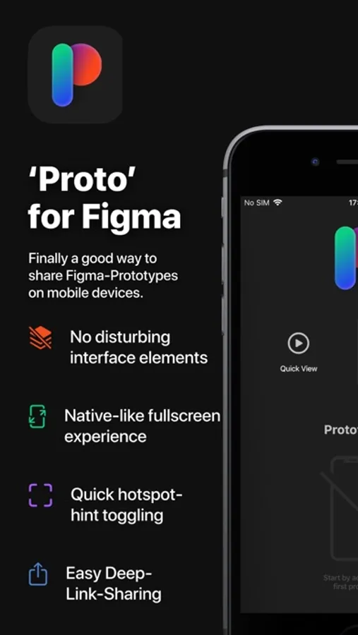 Open any publicly shared prototype link in a fullscreen experience, getting the full canvas of your smartphone from the first to last pixel, just as you designed it in the Figma Mirror app.
