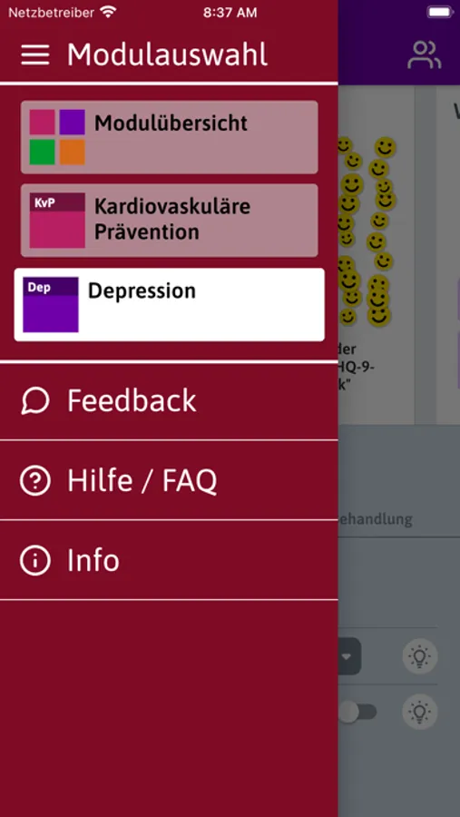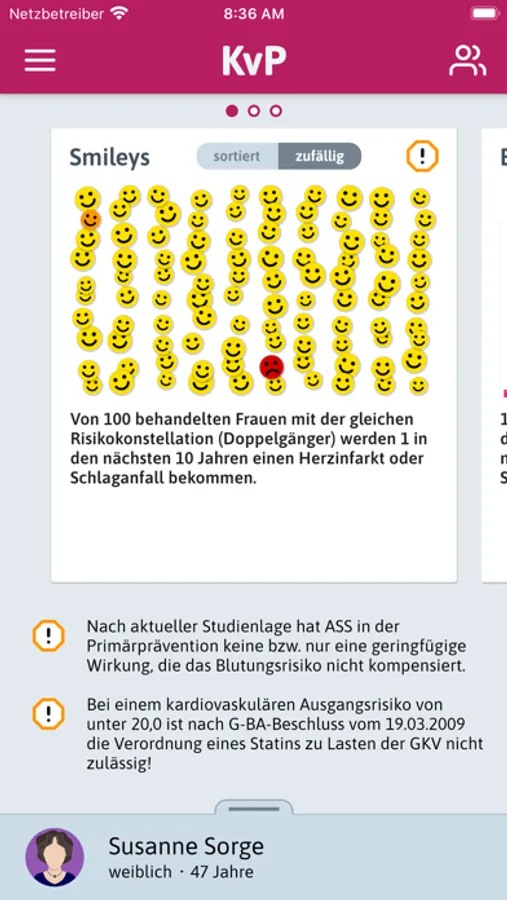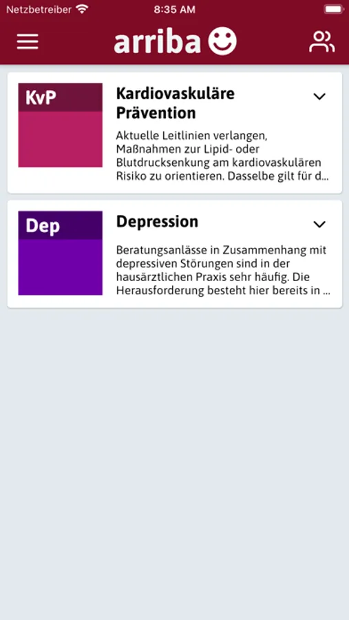 Die App verfügt über die wesentlichen arriba-Funktionen und wurde um zusätzliche edukative Inhalte angereichert (z.B. individuelle Fallvignetten, Info-Texte). Für die direkte Patientenberatung ist die App nicht vorgesehen.