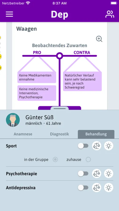 Die App ist ein Simulator damit Interessierte insbesondere Studierende und ÄiW die Prinzipien des SDM auf ihren eigenen mobilen Endgeräten üben können.