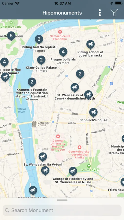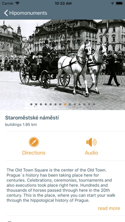 In addition to city-planning documents, Prague has world-class equine art artifacts and monuments. At the forefront, of course, stands the hugely famous statue of Myslbek, by the Czech Saint Wenceslas in Wenceslas Square, and also for example, somewhat neglected by tourists, is the magnificent equestrian statue of Jan Žižka from Trocnov by Bohumil Kafka on Vítkov Hill. Many of these works of art are gems that are frequently unjustly neglected, and so remain undiscovered by curious visitors to Prague. However, at the same time, they are world-class masterpieces, often having interesting origins within the context of hippology. The database “In the footsteps of horses in Prague“ offers the most important historic sights, works of art, and monuments of hippology within this capital city. There are not just simply descriptions of the buildings/structures and fun facts about their beginnings, but there is also photographic or illustrated documentation concerning hippological use or artistic inception. In many cases, the history is complemented by short movie clips. Our interactive database is intended to work on every operating system. Based on the current location of the user, it offers information about the most important buildings/structures in the area focusing on hippology.