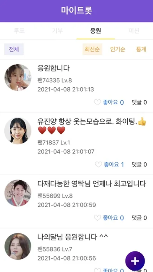 - 내 가수에게 간단한 문구를 작성하여 응원해 주세요.