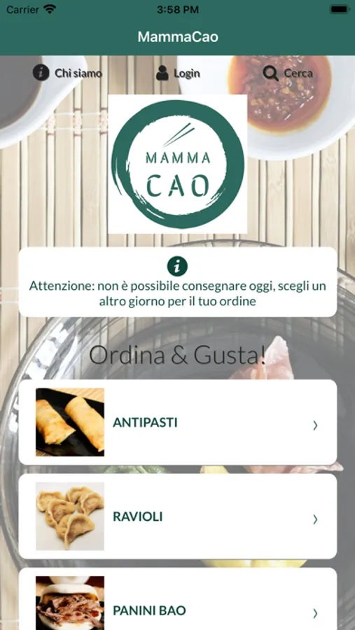 Mamma cao offre la consegna a domicilio di cibo cinese dai sapori casalinghi. Il nostro obbiettivo è portare nelle vostre case la vera cucina cinese e farvi scoprire i sapori autentici di una cucina, che secondo il nostro parare, è troppo sottovalutata. Utilizziamo prodotti freschi e di prima qualità. In cucina, la Mamma si occupa della preparazione dei ravioli, involtini, pancake, panini Bao.. mentre il Papà (poverino, non viene mai nominato ) si occupa della preparazione dei piatti principali saltati in padella.
