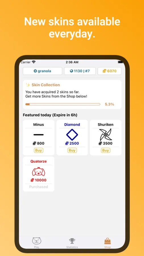 * Collect coins and show off your cool skins. New skins are available every day.