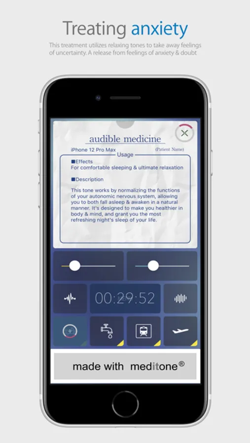 meditone® is a service that utilizes clinical data from research on music therapy carried out in France. This data is then reconstituted using unique AI technology to create tones to aid sufferers of mental disorders.
