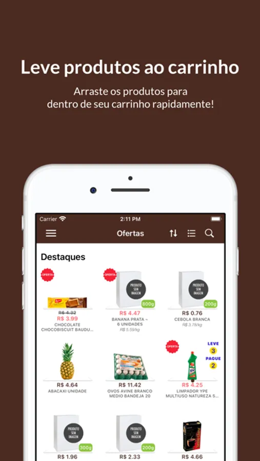 • Adicionar produtos no seu carrinho com um simples tocar e arrastar.