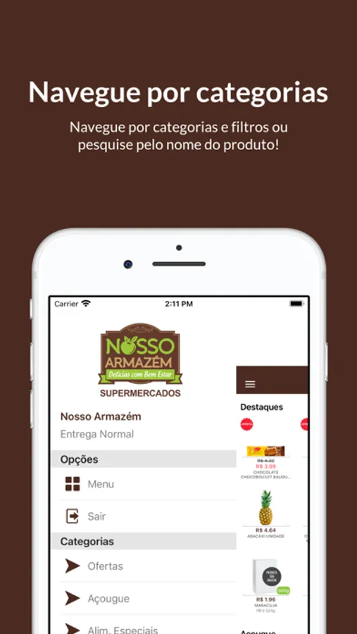 Com o Aplicativo Nosso Armazém é prático e rápido! Diretamente do seu smartphone você irá: