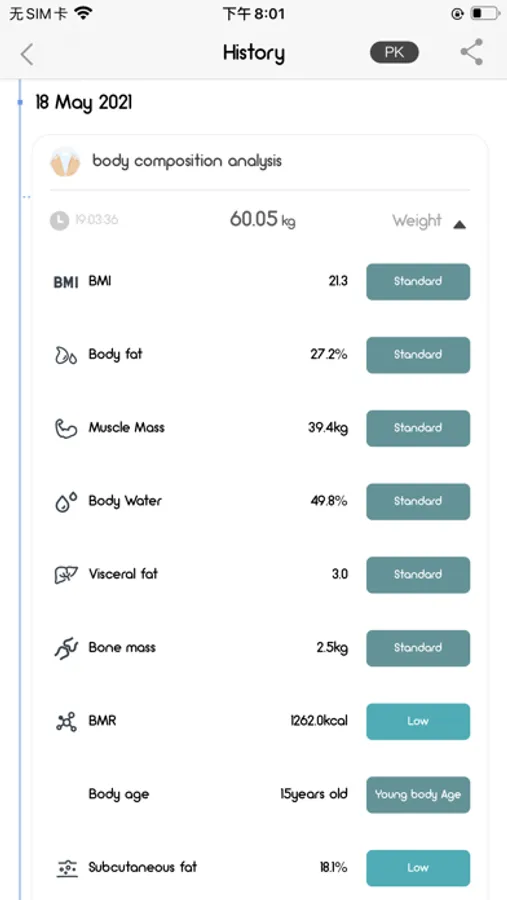 2.Supporting Apple Health Kit(only for iPhones with iOS10 or new version). Data includes Lean Body Mass,Height,Body Mass Index, Body Fat Percentage,Weight,Birthday and Gender will be automatically synchronized to Apple Health Kit.