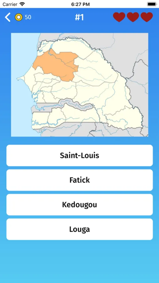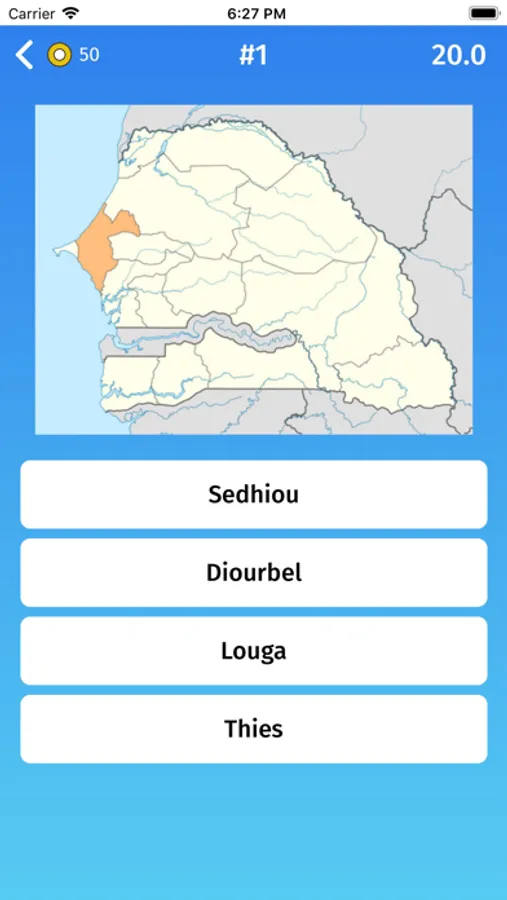 - Multiple choice: guess the provinces of Senegal, by selecting one of the variants.