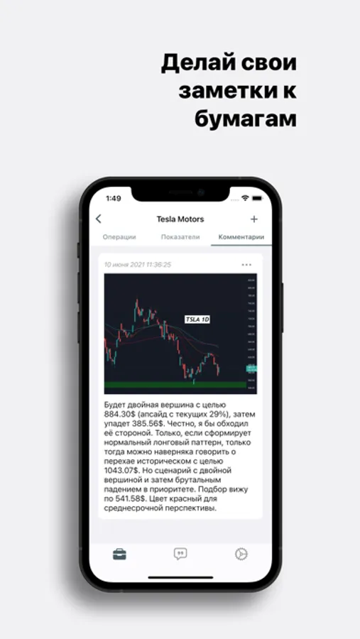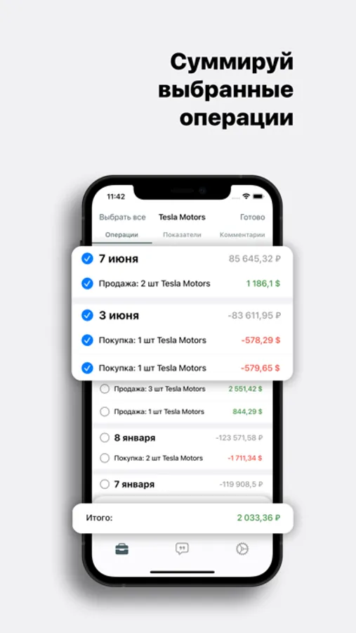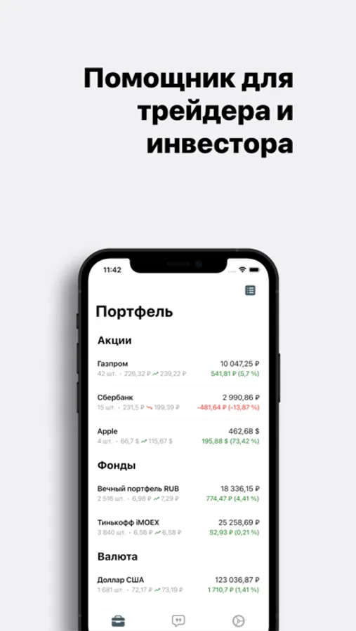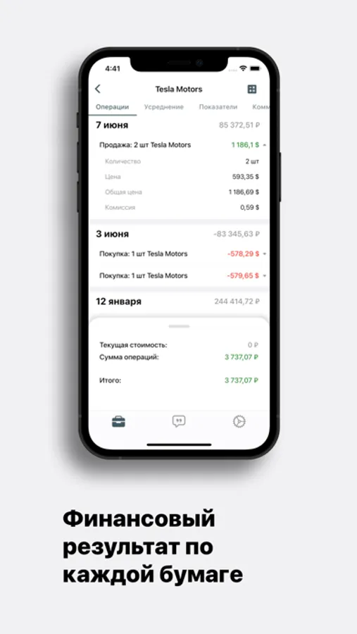 • Суммируй операции в приложении и следи за прибыльностью своих действий по отдельной бумаге или портфелю в целом.