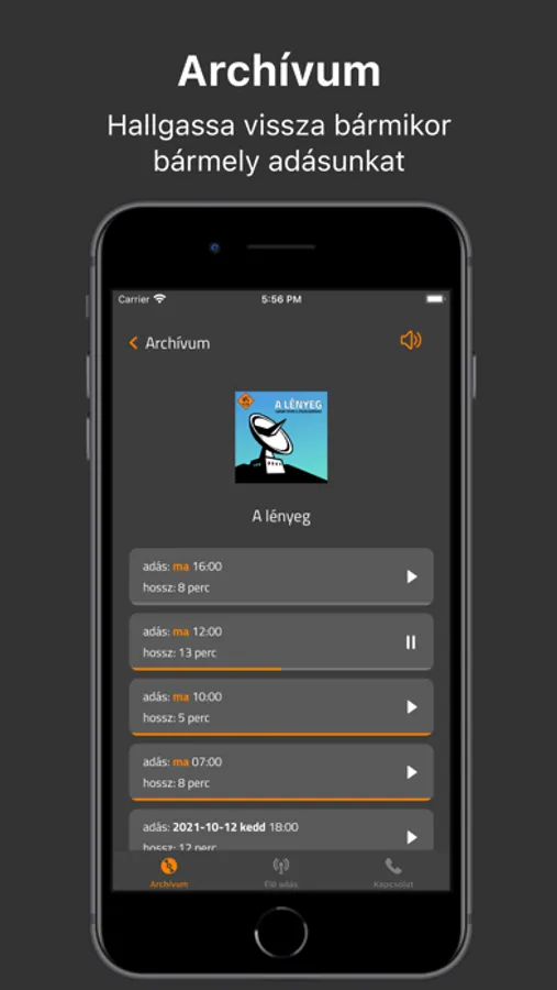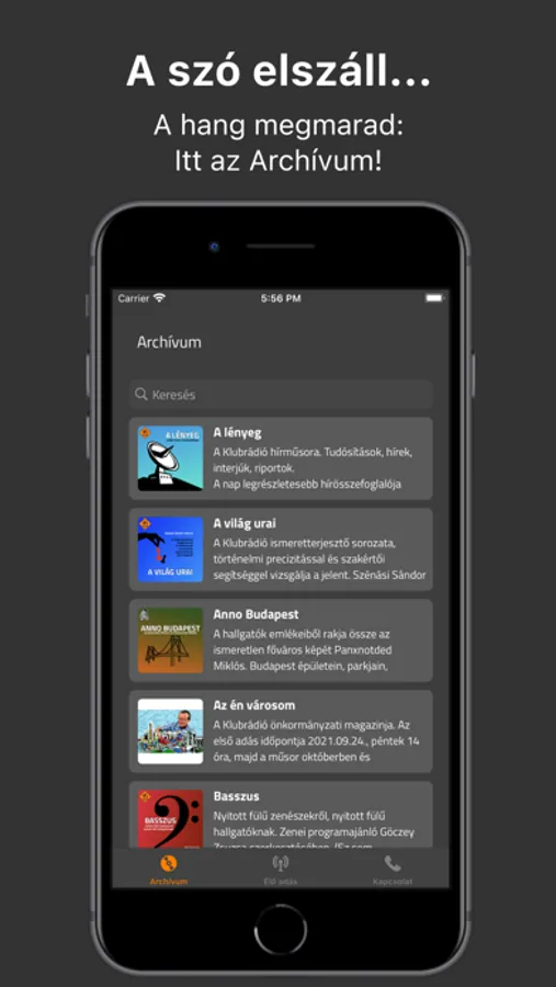 Az élő adáson kívül már az Archívumunk is elérhető. Így ha elmulasztotta kedvenc műsorát, mostantól bármikor visszahallgathatja.