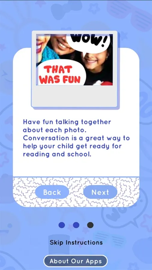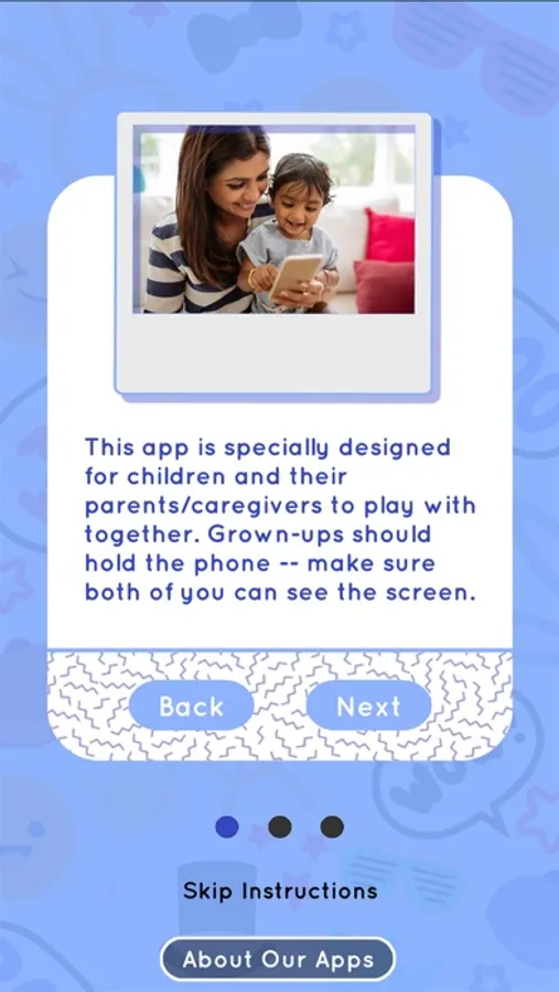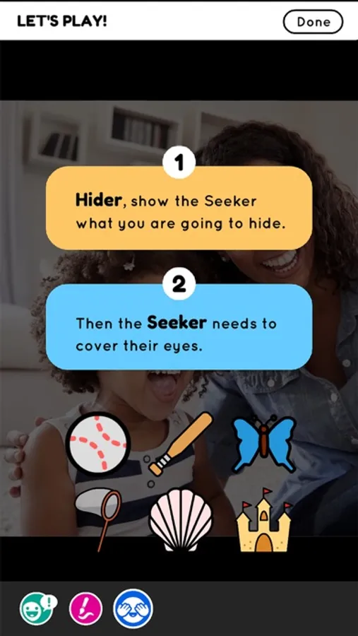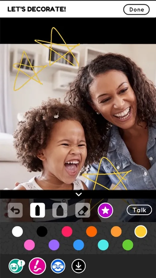 Welcome to Photo Play — a fun and creative way to get families talking! Just by talking with your little one — and helping them talk with you — you can get them ready to read and ready to learn about the world. This app is specially designed for you and your child to use together, talking and laughing about everyday objects and interactions as you play. In Photo Play, you'll use your own family photographs and memories to develop conversations and early literacy skills with your children. Choose a photo and have fun drawing on it, decorating it with stickers, playing hide and seek with it, and talking about people and events you see in the image. Photo Play can help you build your child's language skills even when you've put the app down, during everyday activities like going shopping, running errands, or walking to the playground. Photo Play will give you plenty to talk about all day!
